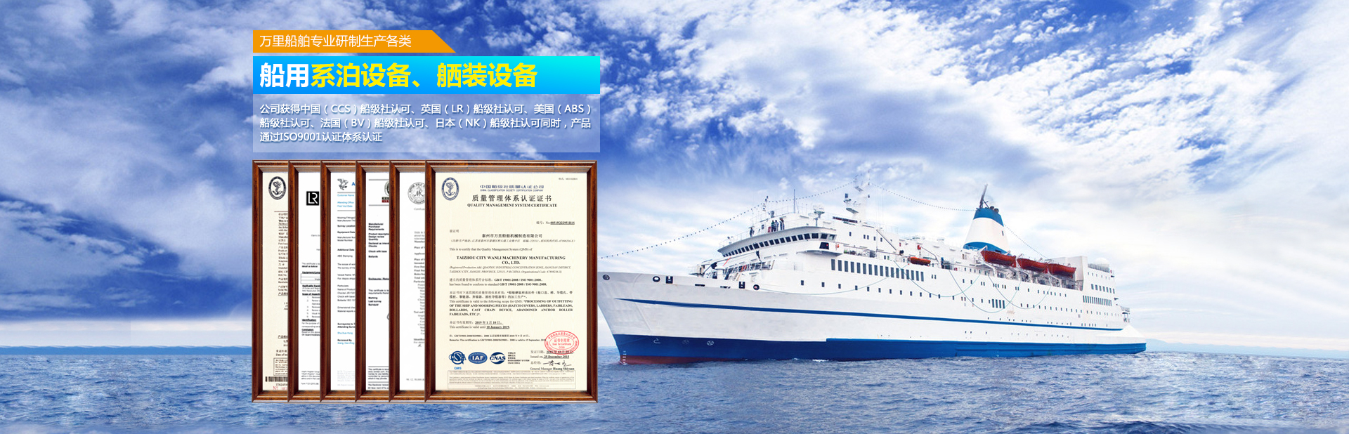 泰州市萬里船舶機械制造有限公司位于姜堰市西郊橋頭工業(yè)集中區(qū),東臨寧靖鹽高速公路,南傍寧啟鐵路及328國道,距泰州火車站10公里,交通十分便利。 本公司是一家研制生產(chǎn)各類船用系泊設(shè)備、舾裝設(shè)備的專業(yè)廠家,所生產(chǎn)產(chǎn)品品種齊全、質(zhì)量可靠。其中導(dǎo)纜器、導(dǎo)纜滾輪、導(dǎo)纜孔、帶纜樁、棄錨器、人孔蓋、導(dǎo)鏈滾輪廣泛應(yīng)用于國內(nèi)各大船廠,同時外銷日本、韓國、西班牙、意大利、臺灣等國家及地區(qū)。本公司已獲得中國(CCS)船級社認(rèn)可、英國(LR)船級社認(rèn)可,美國(A···